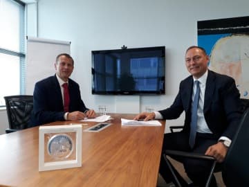 Jaromír Hurta from OPTIMUM (on the left) and Jiří Nepala (RENOMIA) on signing the contract in Brno.